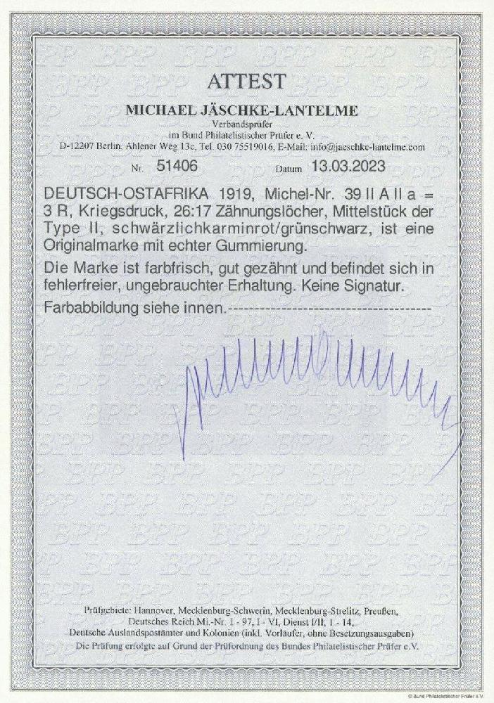 | Prüfer: | Jäschke-Lantelme, Michael (BPP (Bund Philatelistischer Prüfer)) |