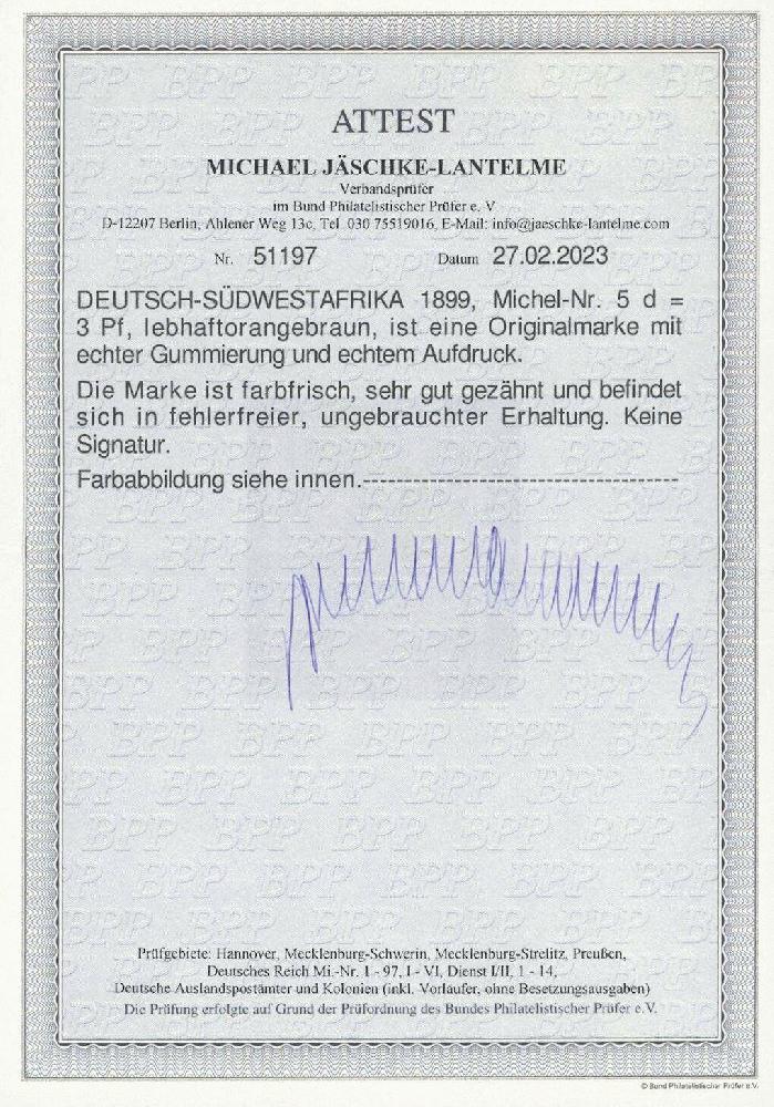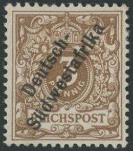 | Zusatzinformationen und Suchstichworte: | Ulrich Felzmann 178. Auktion 22. Juni 2023 Los 2935 Deutsche Kolonien Südwestafrika 3 Pfg Krone/Adler lebhaftorangebraun in fehlerfreier ungebrauchter Pracht-Erhaltung, farbfrisch und sehr gut gezähnt, Fotoattest Jäschke-L. BPP - Einwandfrei ungebraucht sehr seltene Variante, € 1.000,- Ausruf 400,00 EUR |