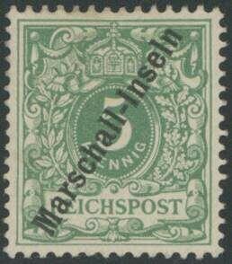 | Zusatzinformationen und Suchstichworte: | Ulrich Felzmann 178. Auktion 22. Juni 2023 Los 2963 Deutsche Kolonien Marshall Inseln 5 Pfg Krone/Adler Jaluit-Ausgabe ungebraucht, farbfrisch und gut gezähnt in fehlerfreier Prachterhaltung, u.a. doppelt sign. Pfenninger sowie Fotoattest Jäschke-L. BPP, € 650,- Ausruf 180,00 EUR |