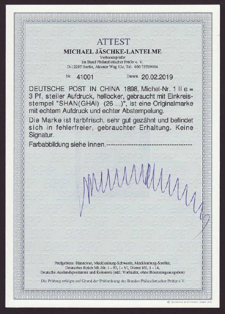 | Prüfgebiet: | Deutsche Auslandspostämter China |