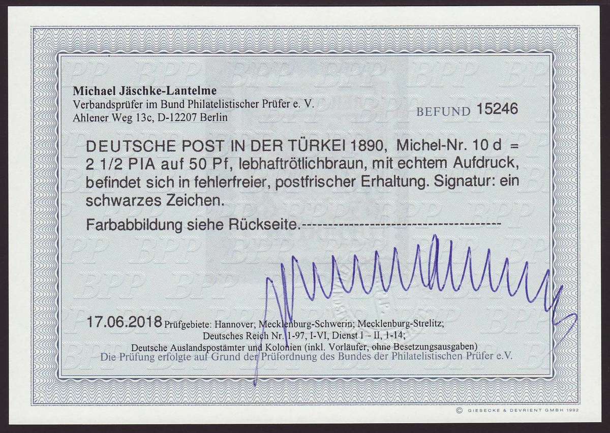 | Zusatzinformationen und Suchstichworte: | Christian E. Geigle Briefmarkenfachhandel Los 0004248093 Deutsche Auslandspost Türkei 1889/1900, 2 1/2 PIA auf 50 Pfg. lebhaftrötlichbraun, postfrisches Luxusstück, FB Jäschke-Lantelme "fehlerfrei". Festpreis 195,00 EUR |