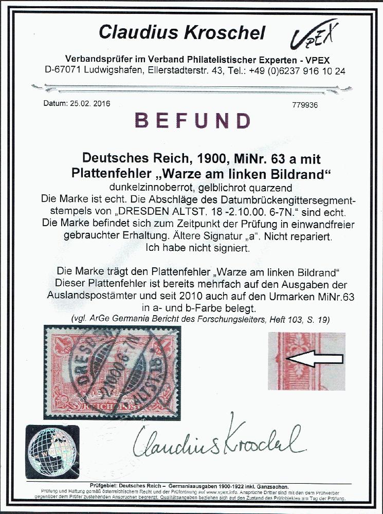 | Prüfer: | Kroschel, Claudius (VPEX (Verband Philatelistischer Experten)) |