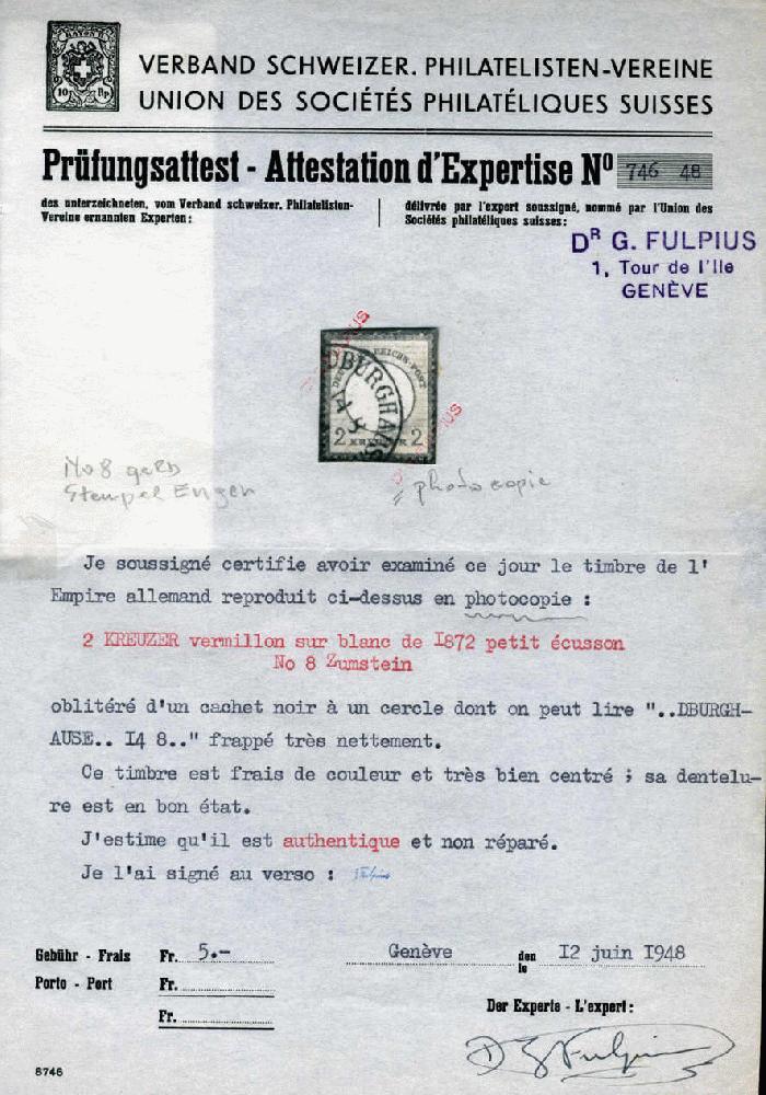 | Prüfer: | Fulpius, George (SBPV / ASEP (Schweizerischer Briefmarken-Prüfer-Verband)) |