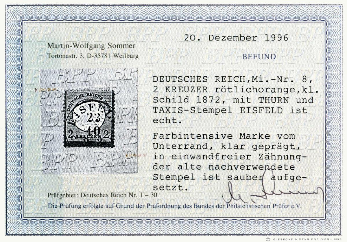 | Prüfer: | Sommer, Martin-Wolfgang (BPP (Bund Philatelistischer Prüfer)) |