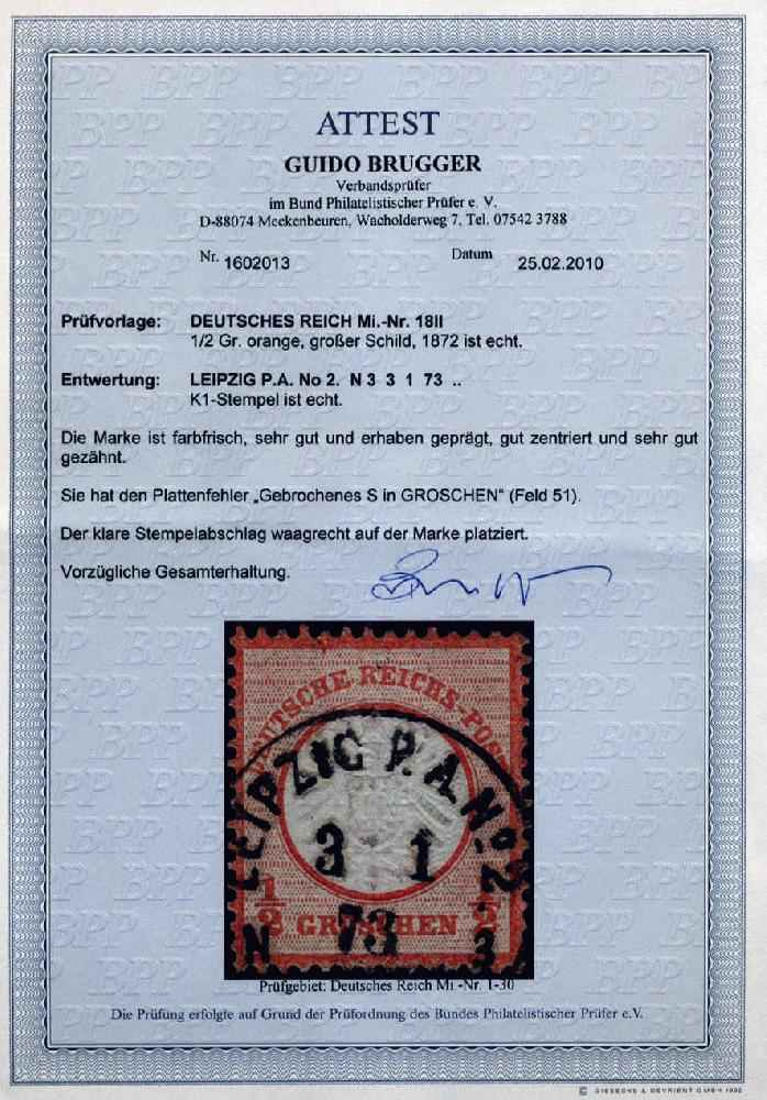 | Zusatzinformationen und Suchstichworte: | AAK Phila GmbH Los 1026001266 Deutsches Reich, 1872 Grosser Brustschild 1/2 Gr gr. Schild m. PF "Gebrochenes S", zentr. rundgest. Luxus Leipzig m. FA Brugger BPP "echt, farbfrisch, sehr gut geprägt, gut zentriert, sehr gut gezähnt, vorzügliche Gesamterhaltung" Festpreis 59,99 EUR |