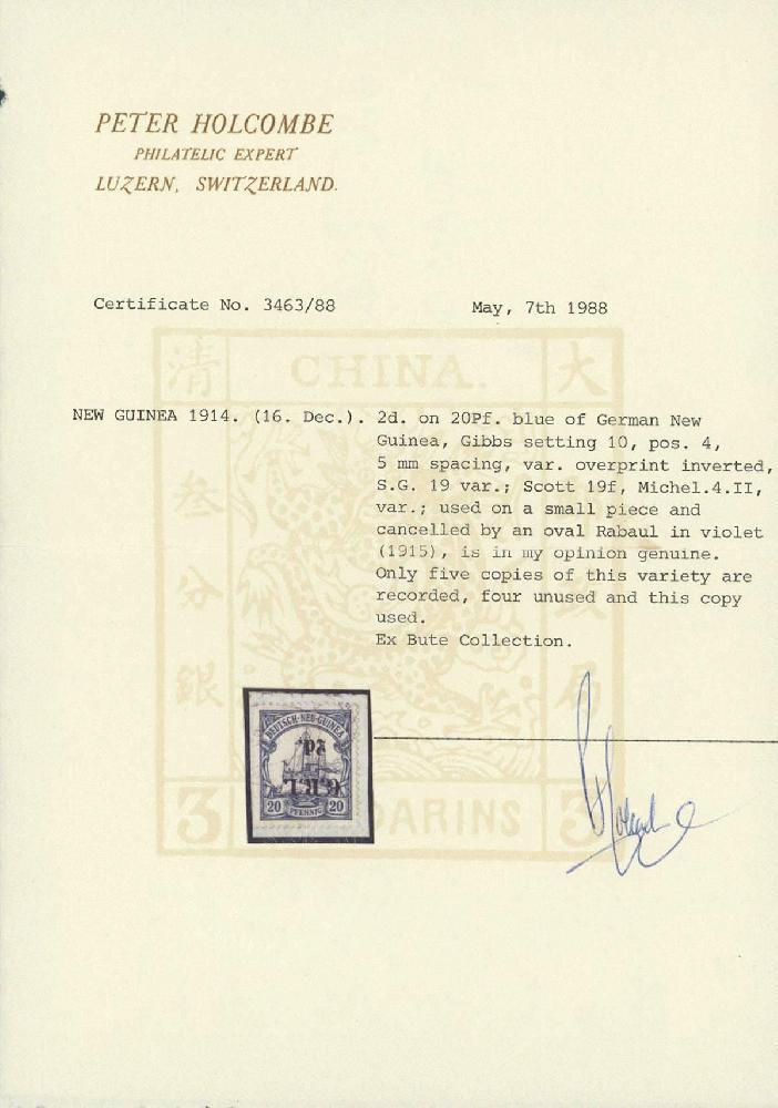 | Prüfgebiet: | Deutsche Kolonien Deutsch-Neuguinea Britische Besetzung |