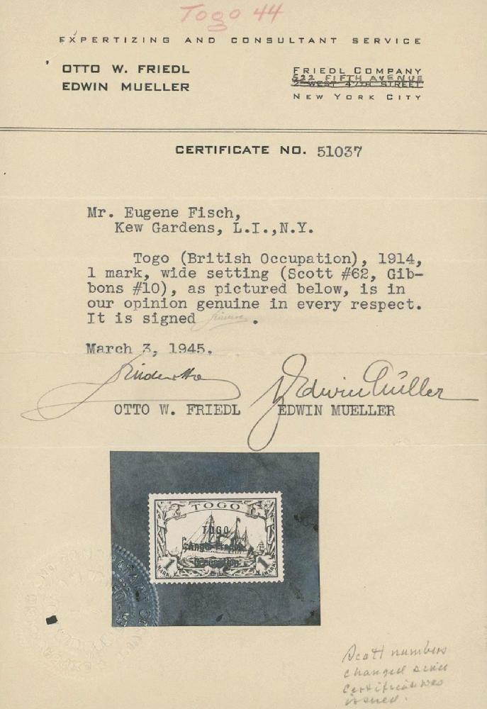 | Prüfgebiet: | Deutsche Kolonien Togo Britische Besetzung |