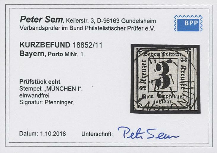 | Prüfgebiet: | Altdeutschland Bayern Portomarken |