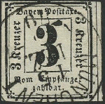 | Zusatzinformationen und Suchstichworte: | Ulrich Felzmann Shop Los 505652 Altdeutschland Bayern "3 Kr schwarz, farbfrisches, allseits voll- bis breitrandiges Luxusstück mit Zwischenlinie rechts, zentrisch klar aufgesetzter K1 MÜNCHEN I 15 DEZ 70, sign. Pfenninger sowie Fotokurzbefund Sem BPP ""einwandfrei""" Festpreis 100,00 EUR |