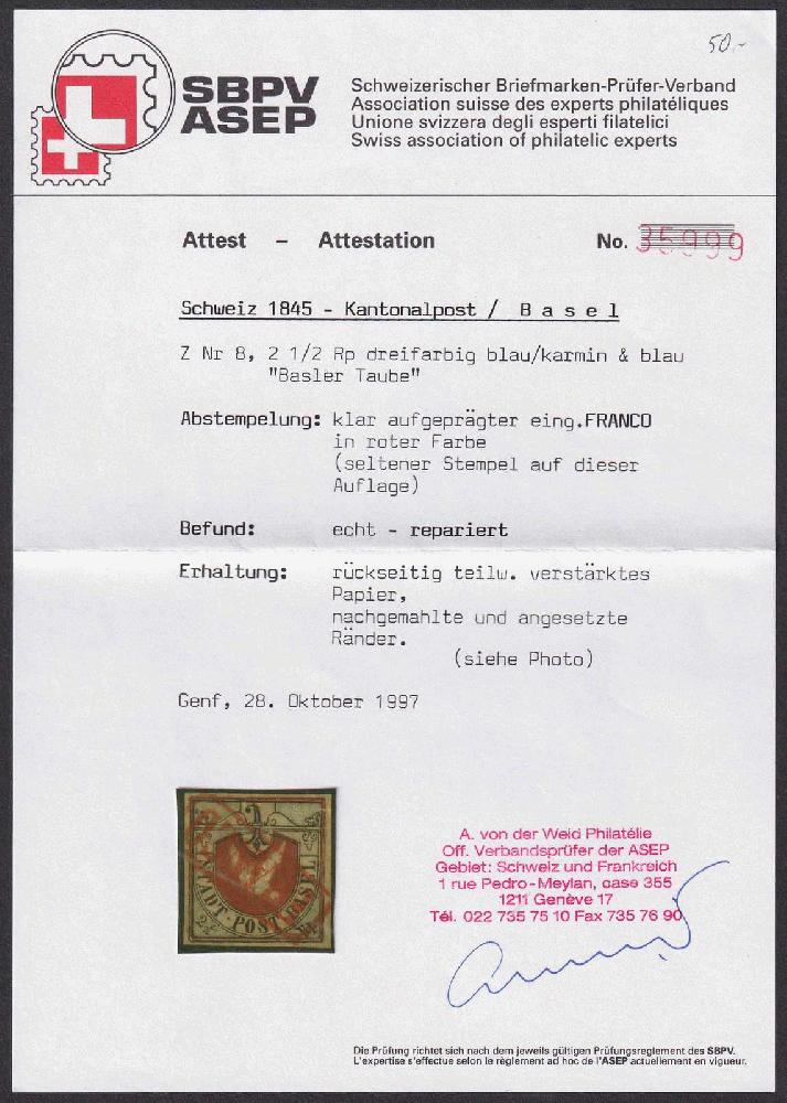 | Prüfer: | von der Weid, Alain (SBPV / ASEP (Schweizerischer Briefmarken-Prüfer-Verband)) |