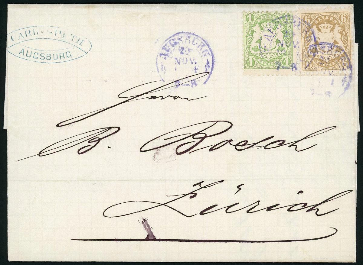 | Zusatzinformationen und Suchstichworte: | Wilhelm Sellschopp – Webshop Los 280 Altdeutschland Bayern 1 und 6 Kr. WZ. "enge Rauten" auf Brief nach Zürich, 6Kr. ein Zahn kurz, sonst tadellos. FB Stegmüller. Festpreis 120,00 EUR |