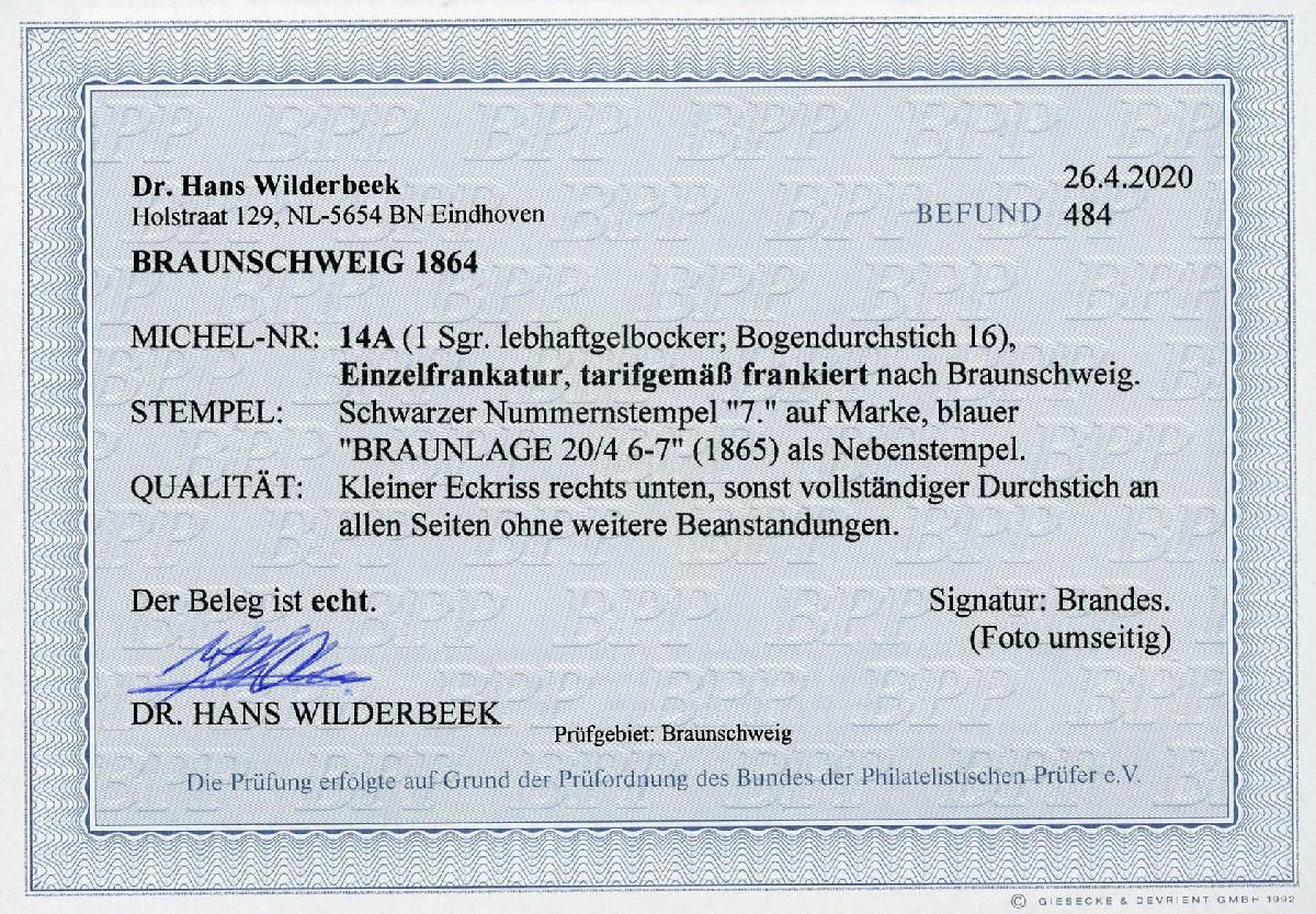 | Zusatzinformationen und Suchstichworte: | Wilhelm Sellschopp – Webshop Los 305 Altdeutschland Braunschweig 1 Sgr. lebhaftgelbocker, kl. Einriß rechts unten, idealer NS "7" (+75,--) = Braunlage. FB Dr. Wilderbeek. Aus Umzugsangebot abzgl. 10% Rabatt. Festpreis 150,00 EUR |