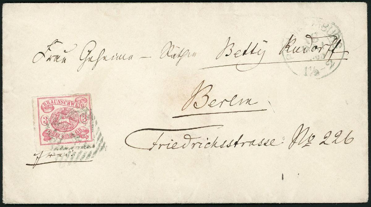 | Zusatzinformationen und Suchstichworte: | Wilhelm Sellschopp – Webshop Los 307 Altdeutschland Braunschweig 3 Sgr. lebhaftlilarot, farbfrisch, rechte obere Ecke fehlerhaft, sonst tadelloser Beleg. FA Dr. Wilderbeek. Aus Umzugsangebot abzgl. 10% Rabatt. Festpreis 300,00 EUR |