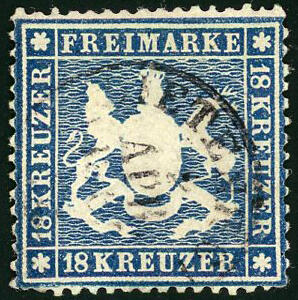 | Zusatzinformationen und Suchstichworte: | Wilhelm Sellschopp – Webshop Los 258 Altdeutschland Württemberg 18Kr. blau, dünnes Papier, farbfrisch, unten ausgabentypisch gezähnt, sonst fehlerfrei. Michel 2800,--. FA Heinrich. Aus Umzugsangebot abzgl. 10% Rabatt. Festpreis 1.300,00 EUR |