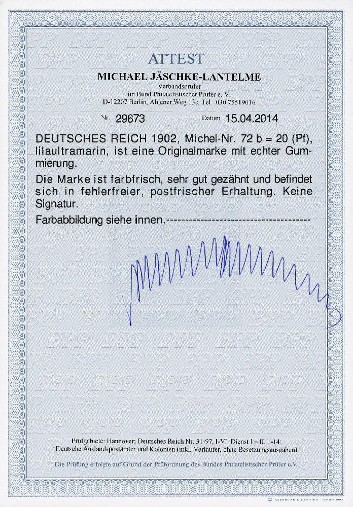 | Prüfgebiet: | Deutsches Reich 1871 - 1918 (Mi-Nr. 1 - 106) |