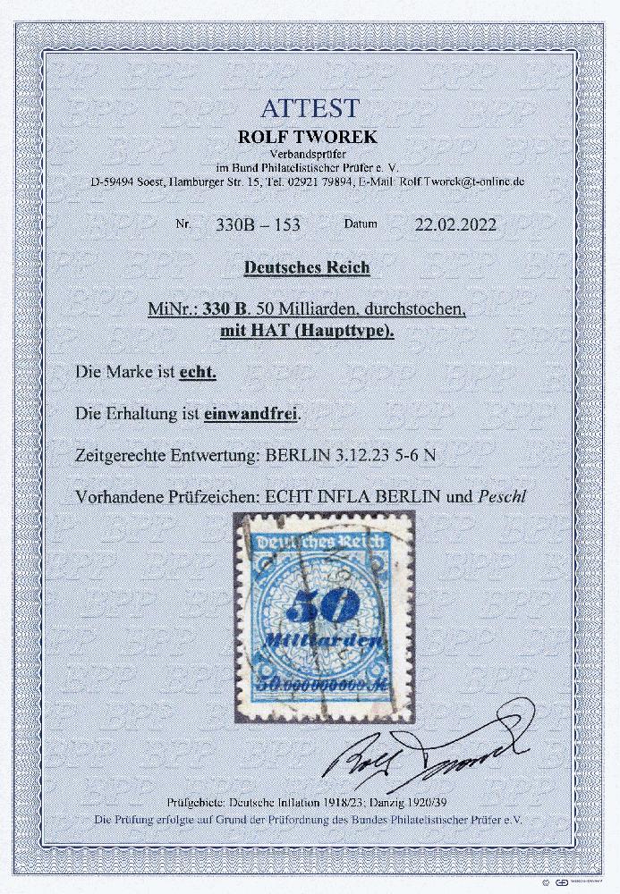 | Prüfgebiet: | Deutsches Reich 1919 - 1923 (Mi-Nr. 107 - 343) |