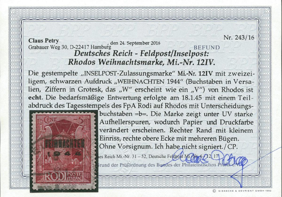 | Prüfer: | Petry, Claus (BPP (Bund Philatelistischer Prüfer)) |
