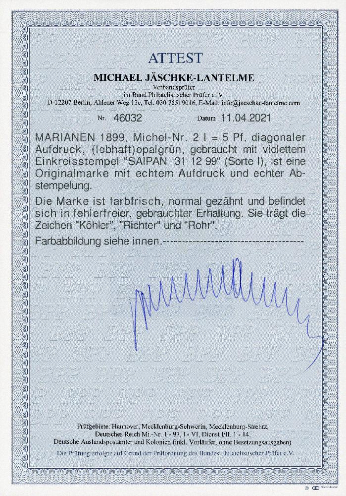 | Prüfgebiet: | Deutsche Kolonien Marianen |