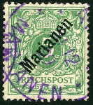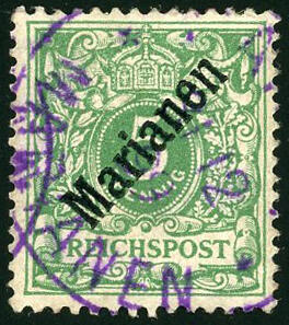| Zusatzinformationen und Suchstichworte: | Wilhelm Sellschopp – Webshop Los 252 Deutsche Kolonien Marianen 5Pf. Grün, diagonaler Aufdruck, zentr., violetter Stempel "SAIPAN 31 12 99" Sorte I, fehlerfrei. FA Jäschke-L. Aus Umzugsangebot abzgl. 10% Rabatt. Festpreis 1.150,00 EUR |