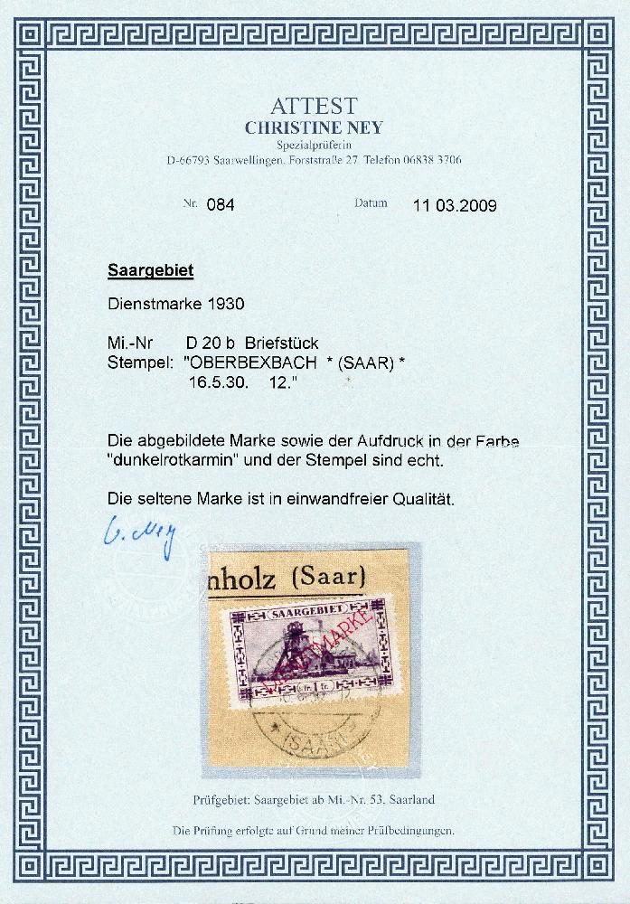 | Prüfgebiet: | Saargebiet Dienstmarken |