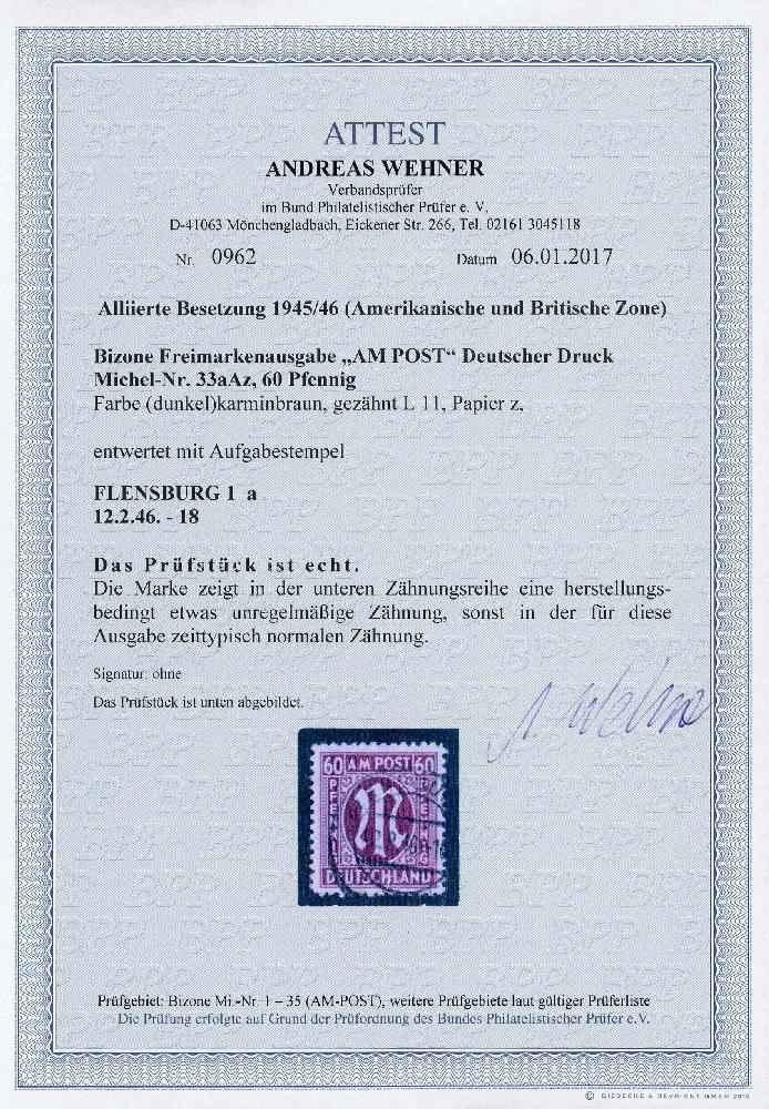 | Prüfgebiet: | Alliierte Besetzung Bizone |