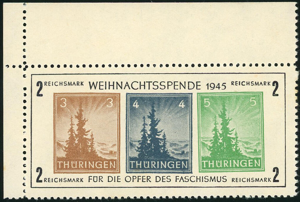 | Zusatzinformationen und Suchstichworte: | Wilhelm Sellschopp – Webshop Los 467 Sowjetische Zone 1945, kleiner Weihnachtsblock, 3 Pf. Fehlfarbe hellsiena, Eckrand links oben, postfrisch, leichte Sockflecke, sonst fehlerfrei. FA Ströh. Michel 2100,--. Aus Umzugsangebot abzgl. 10% Rabatt. Festpreis 650,00 EUR |