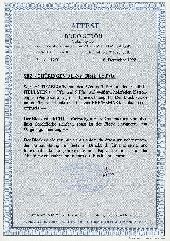 | Prüfer: | Ströh, Bodo (BPP (Bund Philatelistischer Prüfer)) |