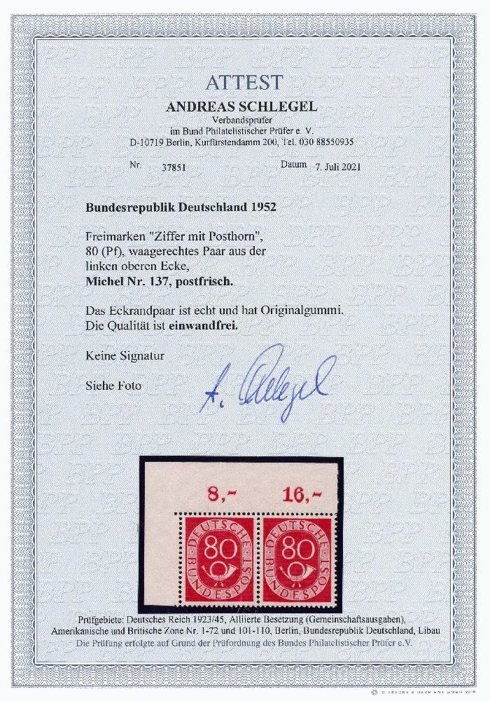 | Prüfer: | Schlegel, Andreas (BPP (Bund Philatelistischer Prüfer)) |