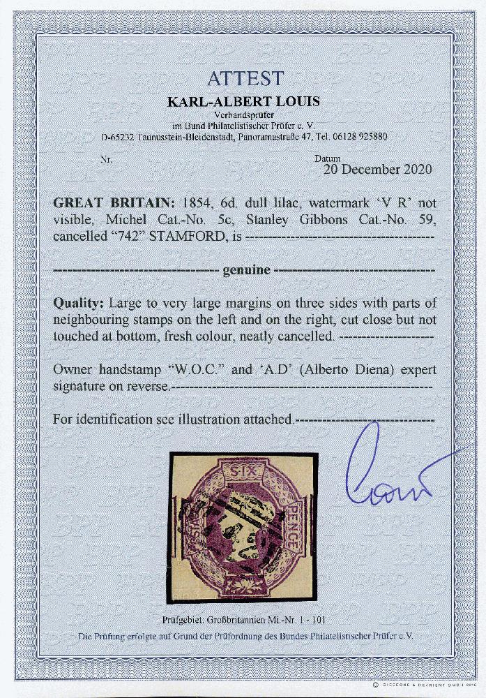 | Zusatzinformationen und Suchstichworte: | Wilhelm Sellschopp – Webshop Los 510 Grossbritannien 6 P. mattlila, viereckig geschnitten, 3 Seiten voll- bis breitrandig, unten enggeschnitten, farbfrisch. Aus Umzugsangebot abzgl. 10% Rabatt. Festpreis 270,00 EUR |