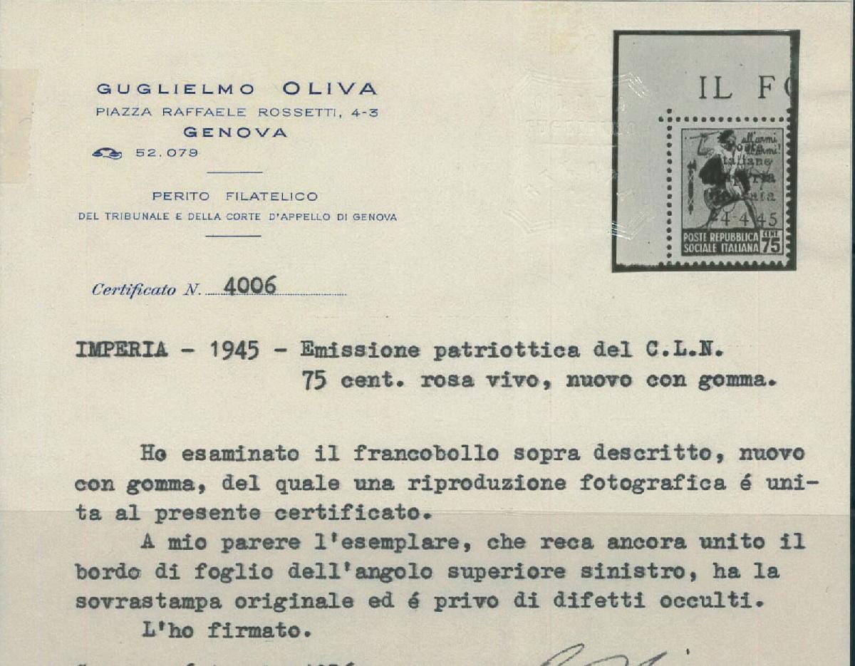 | Prüfgebiet: | Italien Lokalausgaben C.L.N. (verschiedene Orte) 1943-1945 |