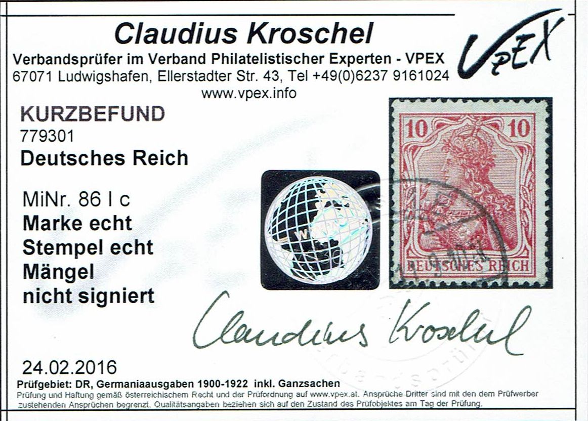 | Prüfgebiet: | Deutsches Reich 1871 - 1918 (Mi-Nr. 1 - 106) |