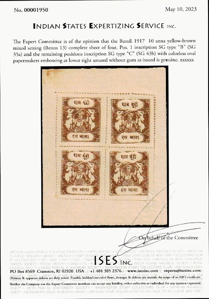 | Prüfgebiet: | Indien - Feudalstaat Bundi |