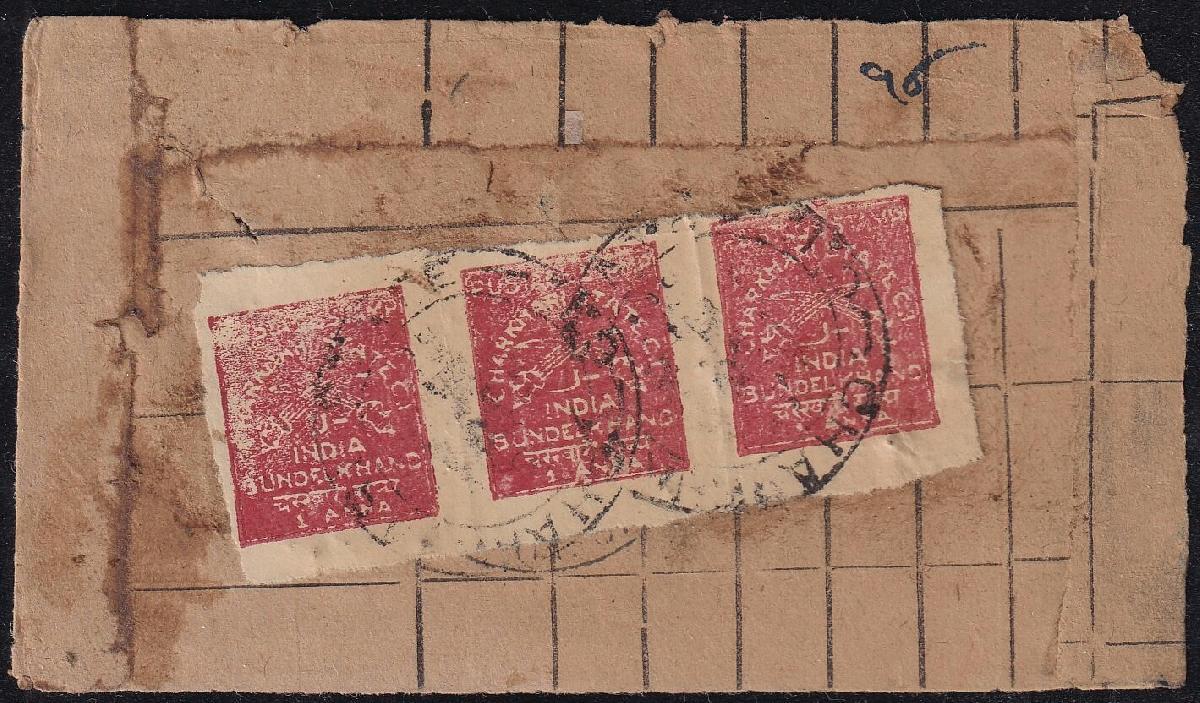 | Zusatzinformationen und Suchstichworte: | India and States Auction 25. Juni 2023 Los 53 Indien Staaten Charkhari Charkhari 1930-45 1 anna rot auf waagrecht gestreiftem Papier (SG 41b) waagrechter Dreierstreifen entwertet auf Briefstück durch zwei Abschlägen des die Charkhari Zweikreis Kreisdatumsstempel. ISES Attest Ausruf 1.000,00 USD |