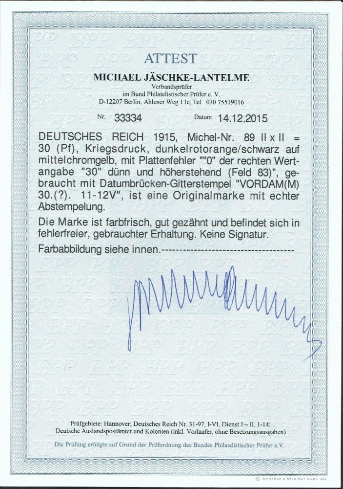 | Prüfer: | Jäschke-Lantelme, Michael (BPP (Bund Philatelistischer Prüfer)) |