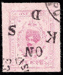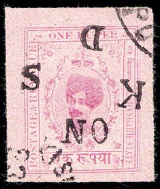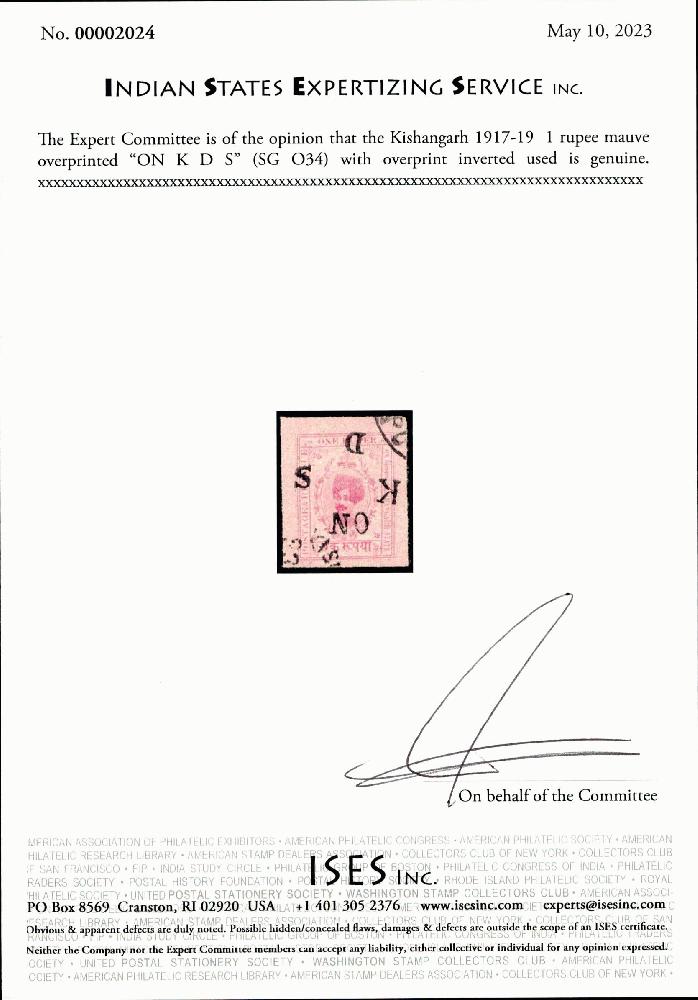 | Zusatzinformationen und Suchstichworte: | India and States Auction 25. Juni 2023 Los 112 Indien Staaten Kishengarh Kishangarh 1917-19 1 Rupien violett überdruckt "auf K D S" (SG O34) mit Überdruck kopfstehend gebraucht. ISES Attest Ausruf 400,00 USD |