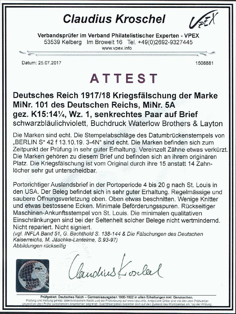 | Prüfgebiet: | Deutsches Reich Kriegs- und Propagandafälschungen 1914-1918 |