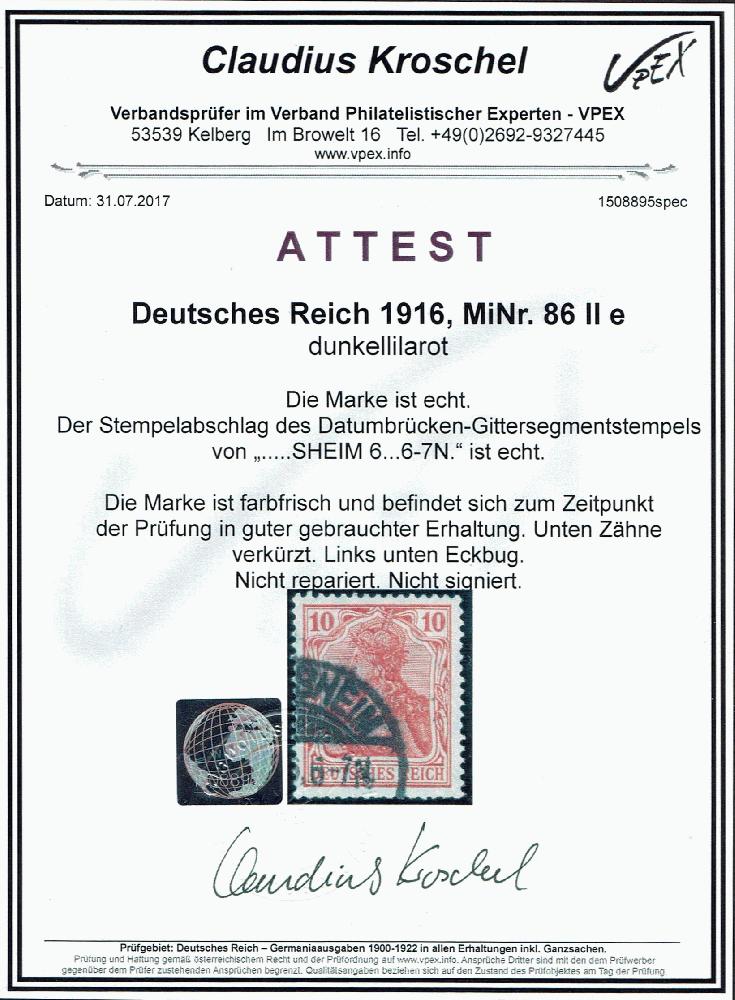 | Prüfer: | Kroschel, Claudius (VPEX (Verband Philatelistischer Experten)) |