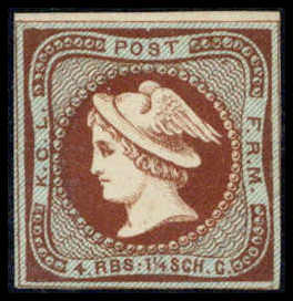 | Zusatzinformationen und Suchstichworte: | Württembergisches Auktionshaus 142. Versteigerung 23.-24. Juni 2023 Los 615 Dänemark 1854, Merkurkopf-Essay 4 RBS / 1¼ Sch. rotbraun/hellblau (kl. Mgl.). Nur ganz wenige Exemplare dieses Essays erhalten geblieben Zuschlag 225,00 EUR |