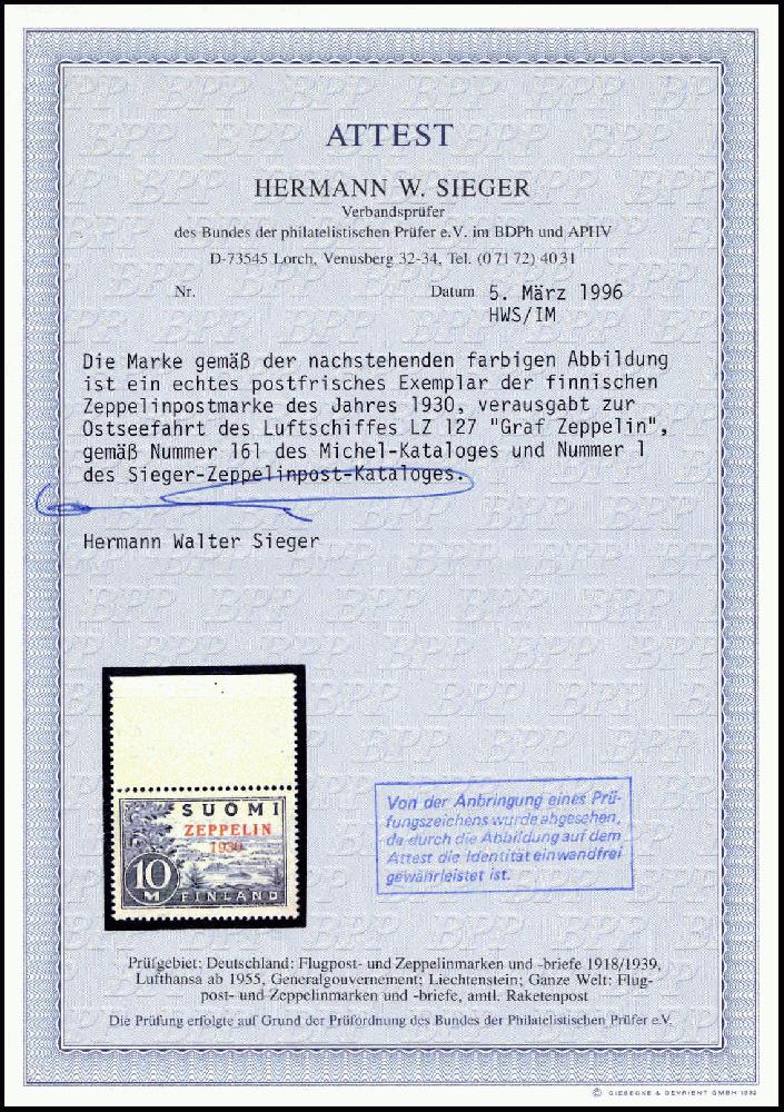 | Prüfer: | Sieger, Hermann Walter (BPP (Bund Philatelistischer Prüfer)) |