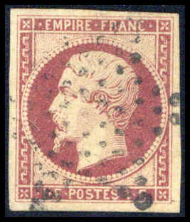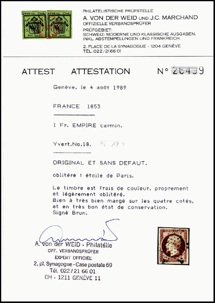 | Zusatzinformationen und Suchstichworte: | Württembergisches Auktionshaus 142. Versteigerung 23.-24. Juni 2023 Los 645 Frankreich 1 Fr. karmin, breitrandiges und frisch erhaltenes Luxusstück mit genau zentr. aufges. Sternstempel von Paris. Ausnahme-Exemplar für hohe Ansprüche Ausruf 1.400,00 EUR |