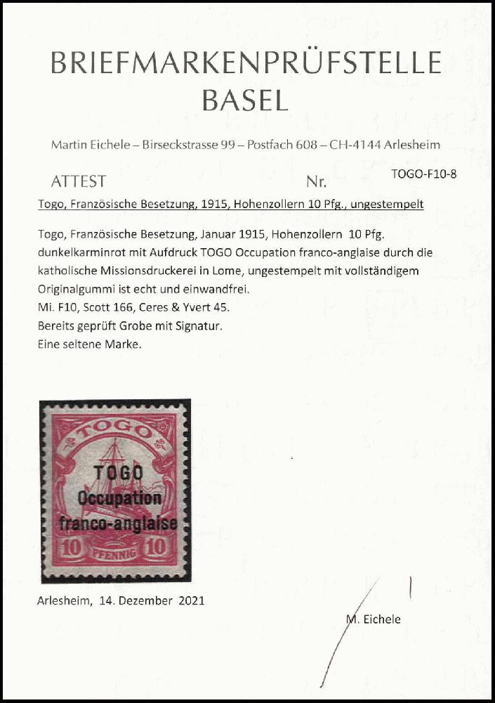 | Prüfgebiet: | Deutsche Kolonien Togo Französische Besetzung |