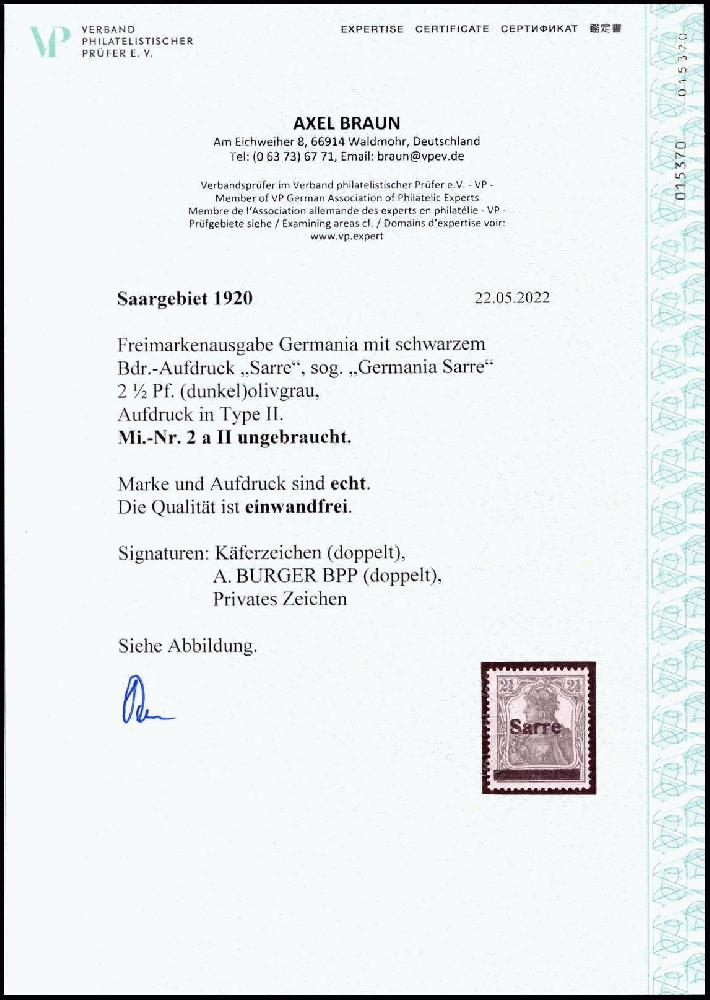 | Zusatzinformationen und Suchstichworte: | Württembergisches Auktionshaus 142. Versteigerung 23.-24. Juni 2023 Los 7938 Saar 2½ Pfg., Type II, tadellos ungebraucht Ausruf 150,00 EUR |