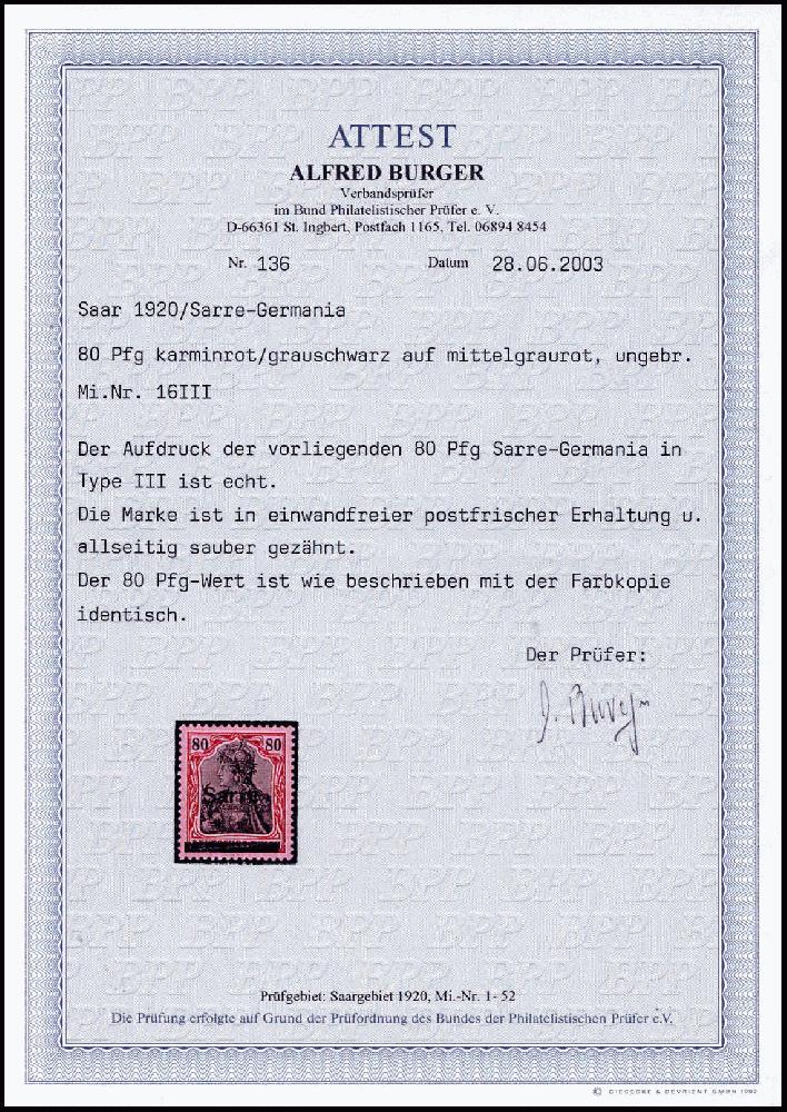 | Prüfer: | Burger, Alfred (BPP (Bund Philatelistischer Prüfer)) |