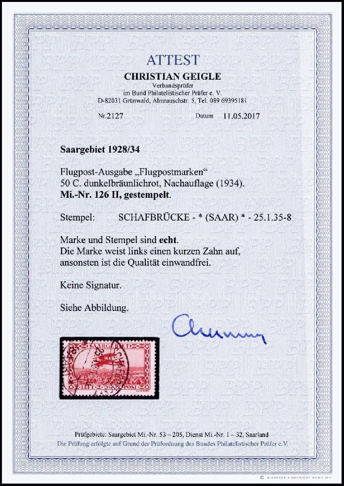 | Prüfgebiet: | Saargebiet (Mi-Nr. 1 - 205) |