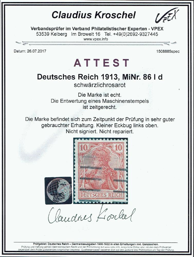 | Prüfer: | Kroschel, Claudius (VPEX (Verband Philatelistischer Experten)) |
