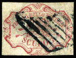 | Zusatzinformationen und Suchstichworte: | Württembergisches Auktionshaus 142. Versteigerung 23.-24. Juni 2023 Los 748 Italien Staaten Kirchenstaat 1 Sc. rosarot, ringsum vollrandig geschnittenes Kabinettstück mit schwarzem Gitterstempel. Eine seltene Marke Ausruf 700,00 EUR |