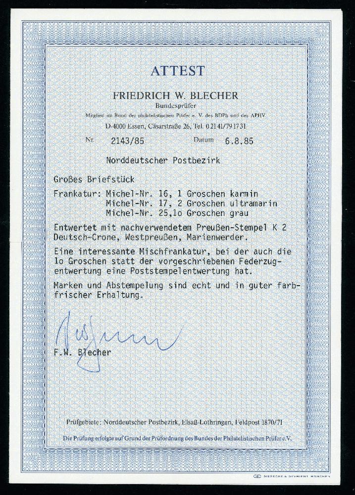 | Prüfgebiet: | Norddeutscher Postbezirk 1868 - 1871 |