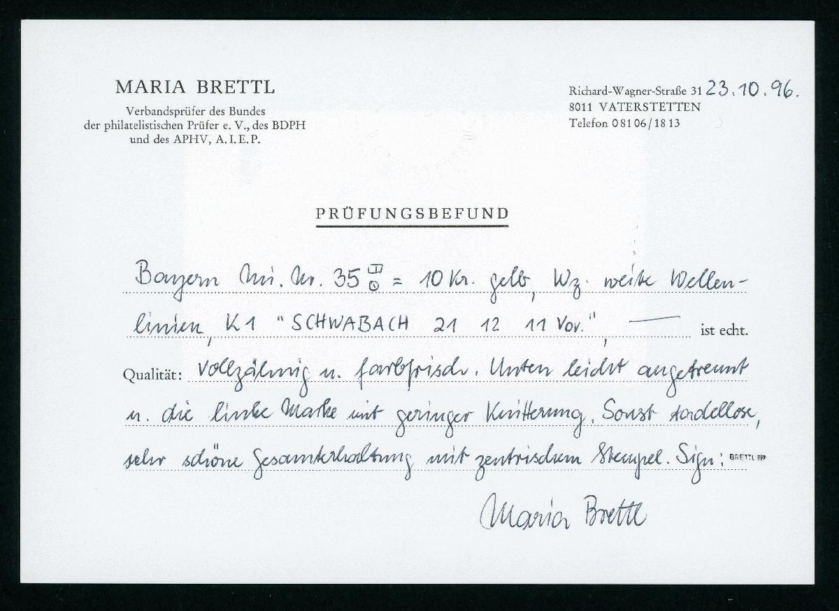| Prüfer: | Brettl, Maria (BPP (Bund Philatelistischer Prüfer)) |