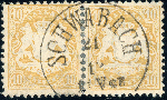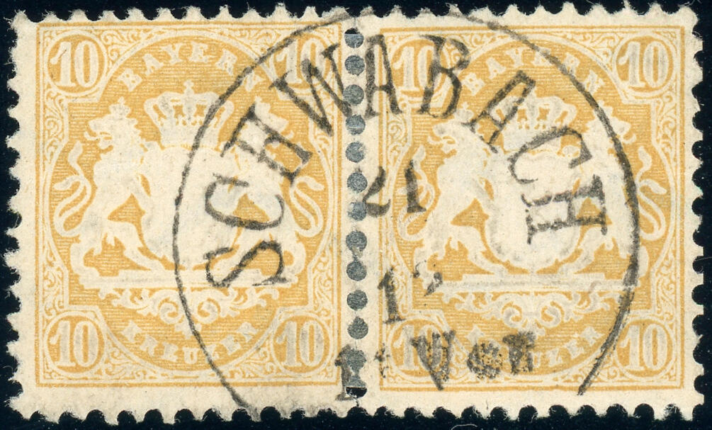 | Zusatzinformationen und Suchstichworte: | Klüttermann - 6. Auktion 27. Juli - 4. August 2023 Los 681 Altdeutschland Bayern 10 Kr. gelb Wz. 2, waagerechtes Paar mit perfektem K1 SCHWABACH, unten leicht angetrennt und li. Marke unmerkl. Knitterung, optisch besser kaum möglich, gepr. Brettl mit Befund Katalogwert: 1500 Ausruf 500,00 EUR |