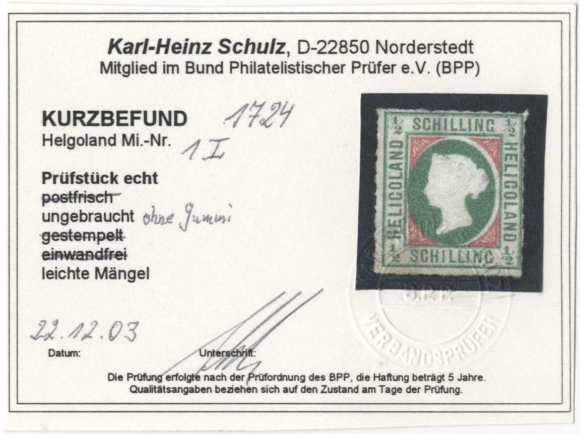 | Prüfgebiet: | Altdeutschland Helgoland |